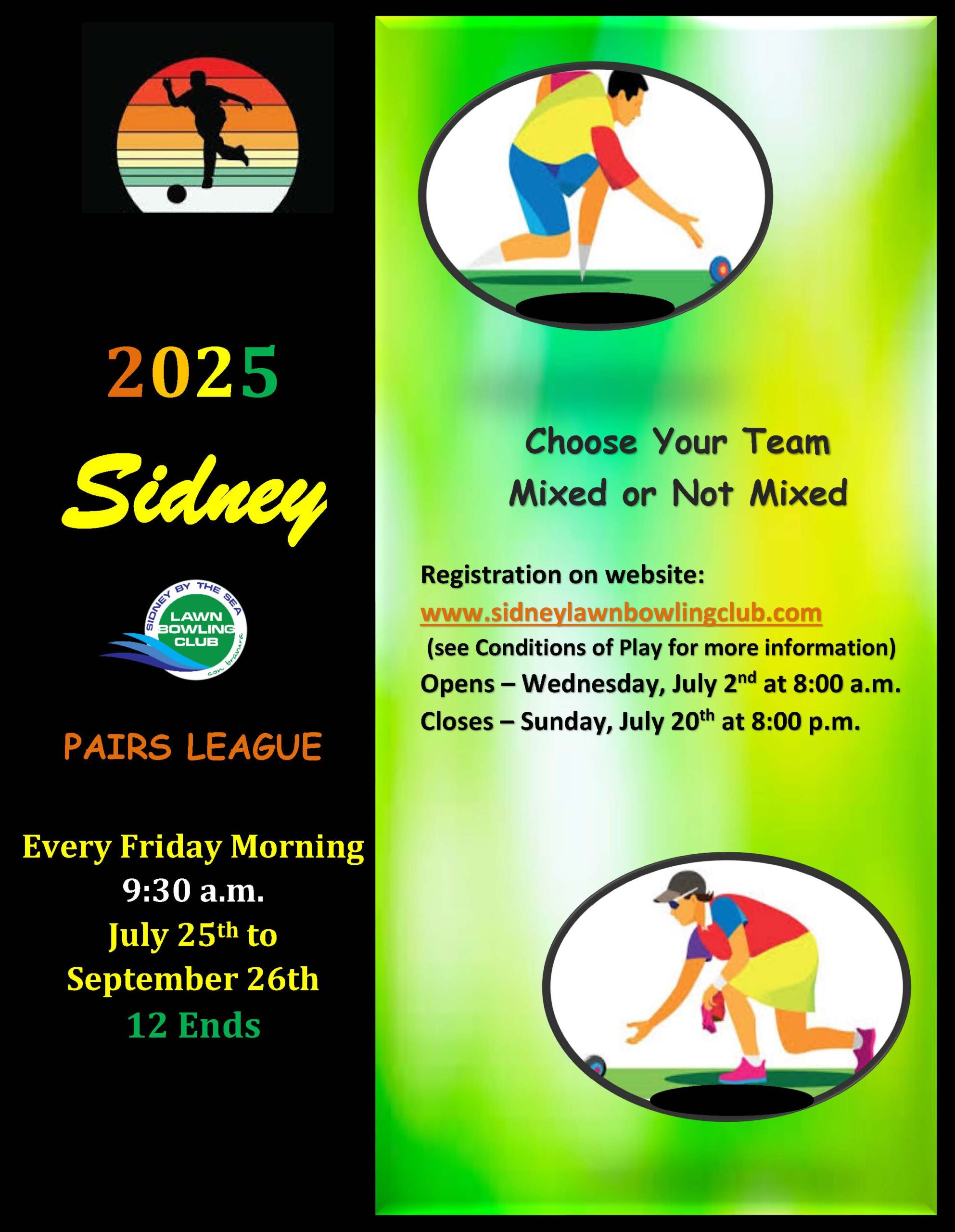 The League is scheduled to run from July 25 to Sept 26 with a maximum of 16 teams. There is no restriction on the team make up. They are self chosen and may be mixed or not. The Pairs League tends to be one of the more competitive events on our calendar. Spares at every rating are encouraged to sign on, however, Spares are not limited to this list and can be selected from the entire membership. Spares must meet the Conditions of Play requirements.